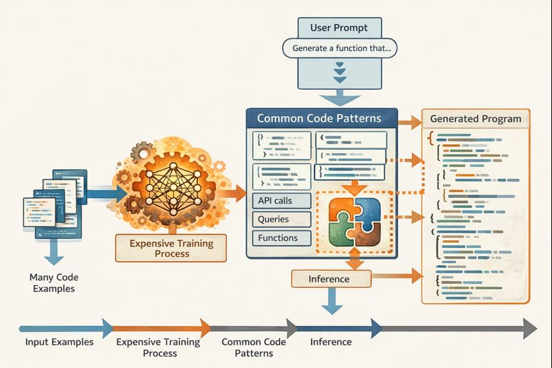 As of this writing, AI programming assistants like Claude Code are taking the software-development world by storm. They build on general LLMs trained over many examples found online. Let’s think about what that process means as a workflow to produce coding insights and apply them to particular programming problems.