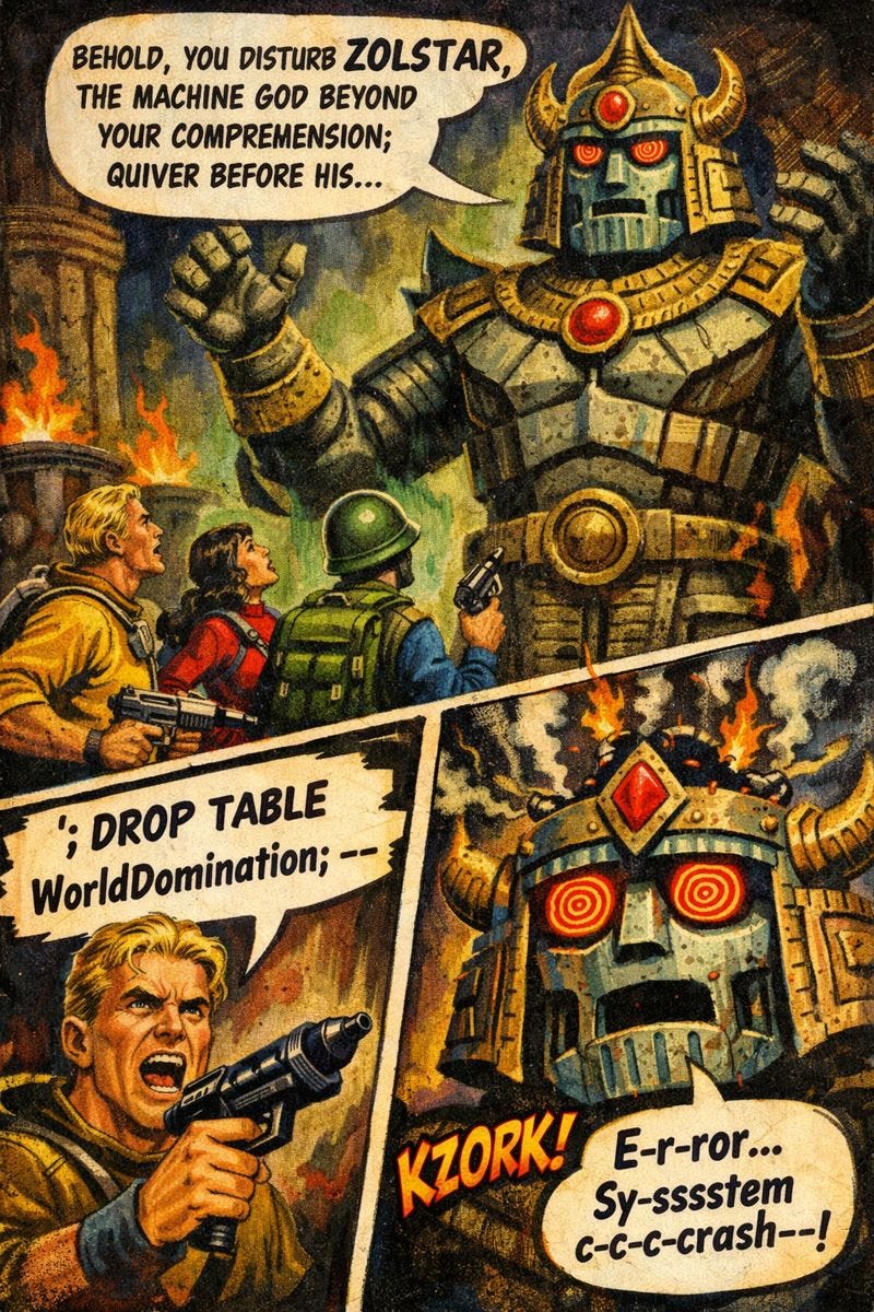 Apologies for somewhat of an inside joke for the programmers out there. The intrepid explorers in the cartoon have used an SQL-injection attack against the superintelligence. It’s a particularly central example of a common coding mistake that can easily be perpetuated by AI that simply learns from crawling the web. SQL injections allow users to trick systems into running arbitrary instructions, which is serious-enough that it reliably makes lists of top categories of security problems. Catastrophic security vulnerabilities aside, there is more opportunity from rethinking programming and how AI can help with it.